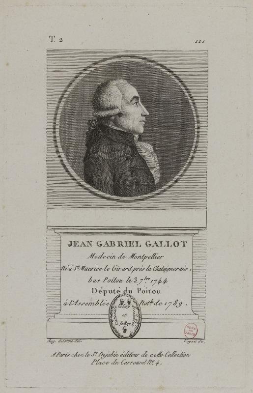 Jean-Gabriel Gallot (1744-1794) est médecin dans les campagnes déshéritées d’un Poitou défait par les épidémies (variole, dysenteries, typho?de, coqueluche, rougeole, etc.). ? cheval ou à pied, plus que ne le lui permettent ses forces, il se met au service des humbles dont il observe avec désarroi le quotidien miséreux, les disettes, la sensibilité aux ? charlatans ?. Hostile à l’acharnement thérapeutique, rejetant les abus de la saignée, il cherche les remèdes au plus près de la nature (cataplasmes, émollients, émétiques, empl?tres vésicatoires, etc.). Il croit en la vertu des cures vers lesquelles il dirige ses clients les plus fortunés ; lui-même est nommé intendant des eaux minérales de Réaumur et de Saint-Laurent.